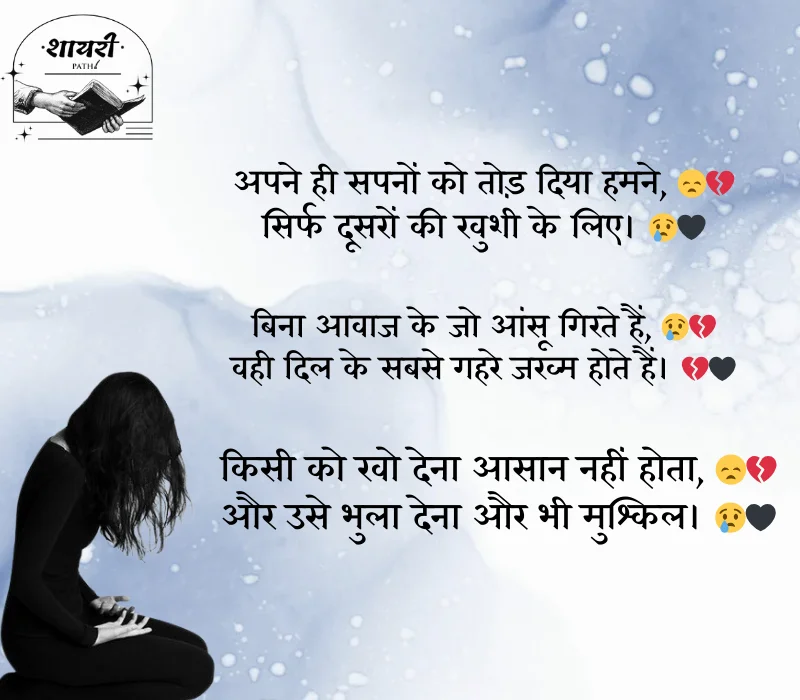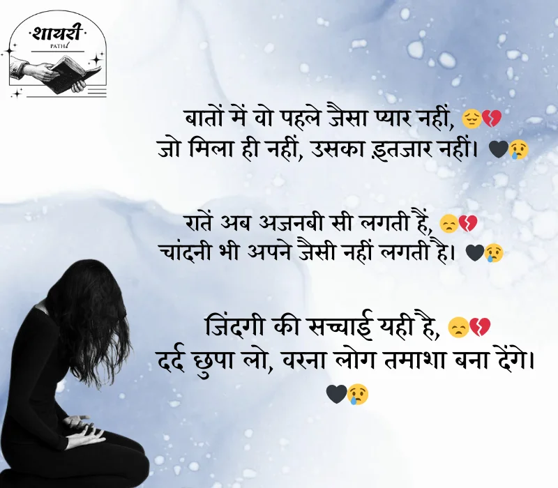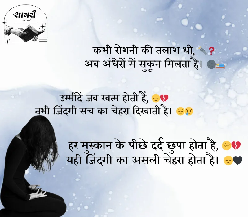 Sad ShayariЁЯШн Life 2 Line, тАЬрдЬреАрд╡рди рдореЗрдВ рд╣рд░ рдореЛрдбрд╝ рдкрд░ рдЦреБрд╢рд┐рдпрд╛рдВ рдФрд░ рдЧрд╝рдо рджреЛрдиреЛрдВ рд╣реА рдорд┐рд▓рддреЗ рд╣реИрдВред рдХрднреА рджрд┐рд▓ рдореЗрдВ рд╣рд▓рдЪрд▓ рд╣реЛрддреА рд╣реИ рддреЛ рдХрднреА рдЪреБрдкреНрдк рд░рд╣рддреА рд╣реИ, рд▓реЗрдХрд┐рди рджрд░реНрдж рдЕрдХреНрд╕рд░ рдЙрди рднрд╛рд╡рдирд╛рдУрдВ рд╕реЗ рдЬрдиреНрдо рд▓реЗрддрд╛ рд╣реИ рдЬрд┐рдиреНрд╣реЗрдВ рд╣рдо рд╢рдмреНрджреЛрдВ рдореЗрдВ рдирд╣реАрдВ рдврд╛рд▓ рдкрд╛рддреЗред рд╣рдорд╛рд░реА Sad ShayariЁЯШн Life 2 Line рдЙрди рдЫреБрдкреА рд╣реБрдИ рднрд╛рд╡рдирд╛рдУрдВ рдХреЛ рдПрдХ рдЖрд╡рд╛рдЬрд╝ рджреЗрддреА рд╣реИ, рдЬреЛ рджрд┐рд▓ рдХреА рдЧрд╣рд░рд╛рдИрдпреЛрдВ рдореЗрдВ рджрдмреА рд░рд╣рддреА рд╣реИрдВред рдпреЗ рд╢рд╛рдпрд░реА рдЙрди рд▓реЛрдЧреЛрдВ рдХреА рдЖрд╡рд╛рдЬрд╝ рд╣реИ рдЬрд┐рдирдХрд╛ рджрд┐рд▓ рдЯреВрдЯрд╛ рд╣реИ, рдЬрд┐рдирдХреА рдЖрдБрдЦреЛрдВ рдореЗрдВ рдЖрдВрд╕реВ рд╣реИрдВ рдФрд░ рдЬреЛ рдЕрдХреЗрд▓реЗрдкрди рдХрд╛ рд╕рд╛рдордирд╛ рдХрд░ рд░рд╣реЗ рд╣реИрдВред